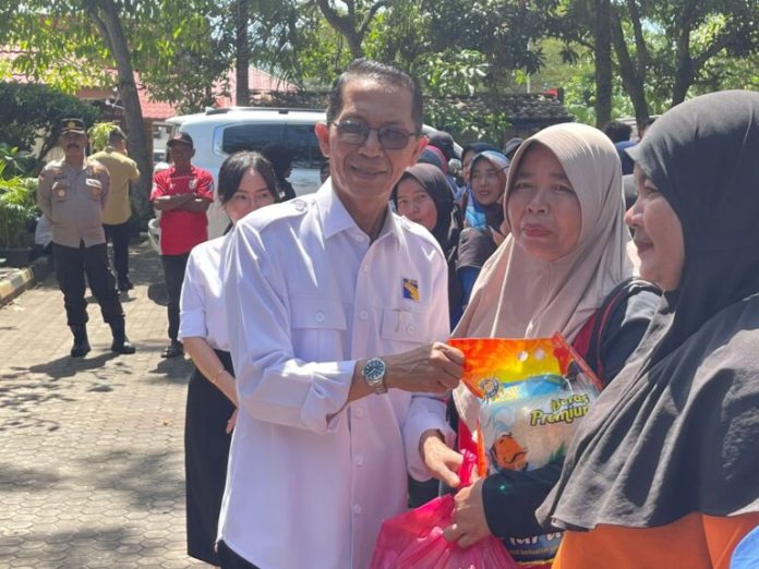Batam (DKN) – Wali Kota Batam, Amsakar Achmad bersama Wakil Wali Kota Batam, Li Claudia Chandra, menyerahkan sebanyak 1.500 paket bantuan sembako kepada petugas kebersihan di lingkungan Dinas Lingkungan Hidup (DLH) Kota Batam, di halaman Kantor DLH Kota Batam, Selasa (23/9/2025).
