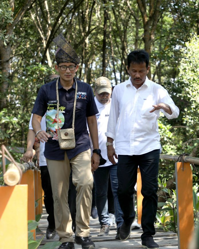 Batam (DKN) – Kepala Badan Pengusahaan Batam (BP Batam), Muhammad Rudi, bersama Menteri Pariwisata dan Ekonomi Kreatif (Menparekraf) RI, Sandiaga Salahuddin Uno, mengunjungi Desa Wisata Kampung Tua Bakau Serip, Nongsa, pada Selasa (31/5/2022).