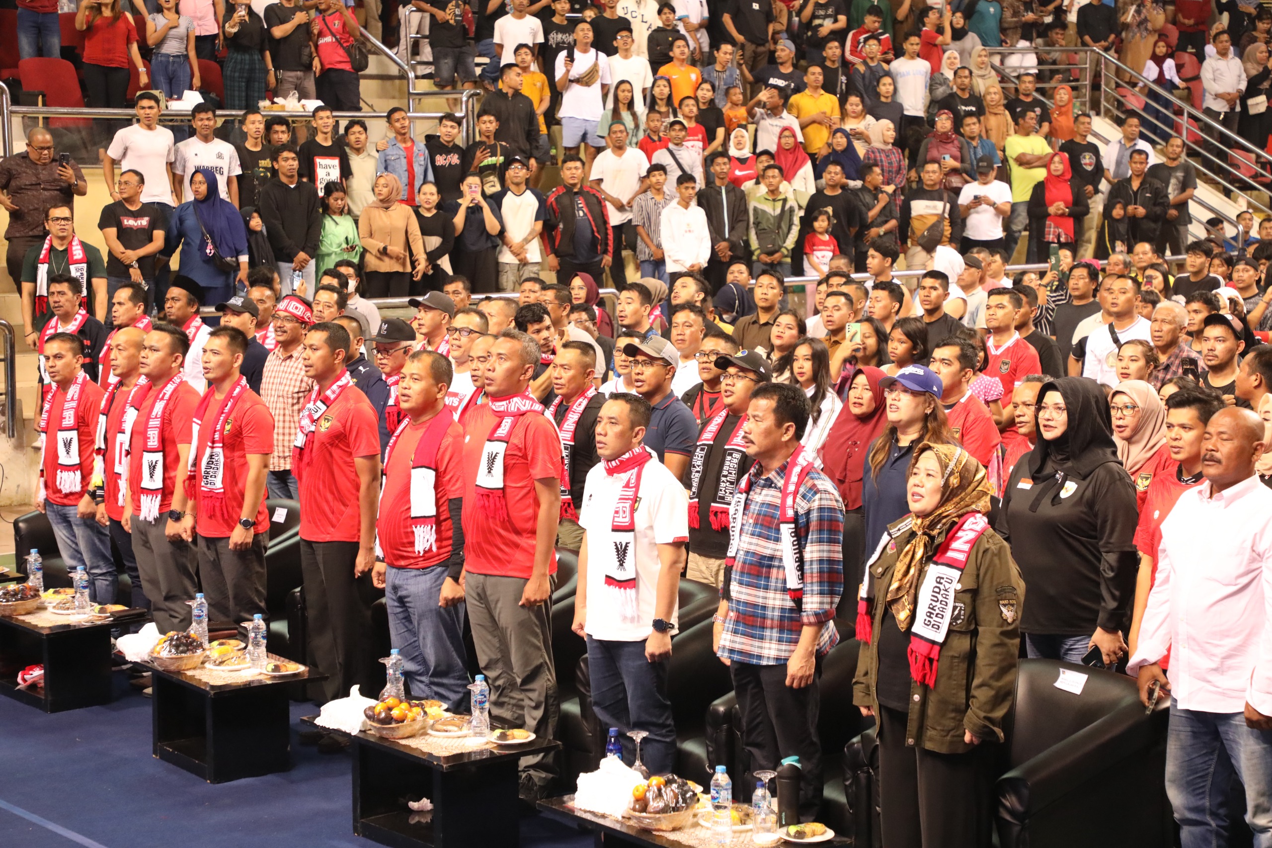 Batam (DKN) – Kepala Badan Pengusahaan Batam (BP Batam), Muhammad Rudi nonton bareng perebutan juara ketiga Piala Asia U23 pada Kamis (2/5/2024) di Sport Hall Tumenggung Abdul Jamal.