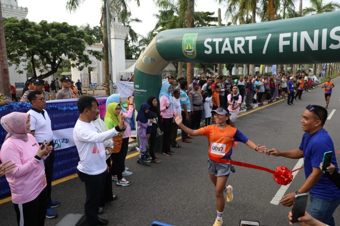 Batam (DKN) – Kepala BP Batam, Muhammad Rudi, melepas ratusan peserta Maraton Batam 10 K Tahun 2023 di halaman parkir Hotel Santika Batam Center, Minggu (23/7/2023).