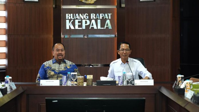 Batam (DKN) – Kepala BP Batam Amsakar Achmad menerima kunjungan kerja Bupati Batu Bara Baharuddin Siagian pada Rabu (21/1/2026) guna mendiskusikan transformasi infrastruktur air dan strategi penguatan ekosistem investasi, di Ruang Rapat Lantai 8, Gedung Annex BP Batam.