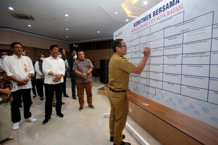 Batam (DKN) – Wali Kota Batam Muhammad Rudi menutup rangkaian Bimbingan Teknis Penyusunan Masterplan Smart City (Kota Cerdas) di Aula Engku Hamidah Kantor Walikota Batam, Selasa (6/9) siang. Kegiatan tersebut juga diikuti penandatanganan komitmen bersama menuju Smart City Kota Batam.