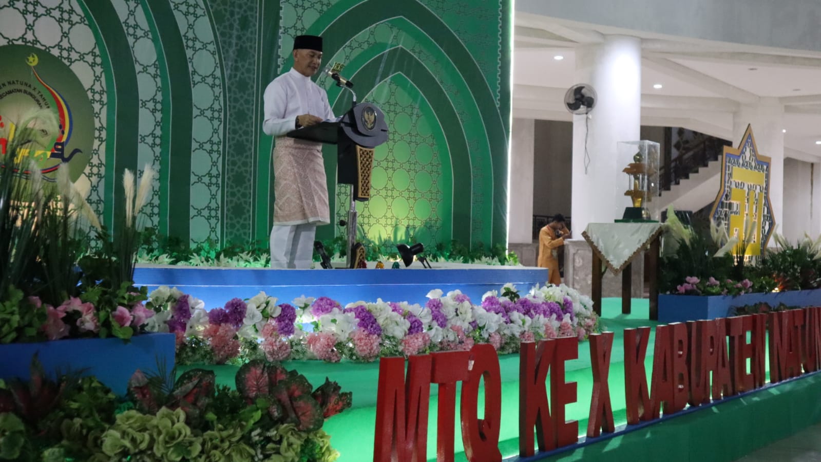 Natuna (DKN) – Kegiatan Mushabaqoh Tilawatil Quran (MTQ) ke X Kabupaten Natuna resmi dibuka oleh Wakil Bupati, Rodhial Huda, di Masjid Agung Natuna, Kecamatan Bunguran Timur, Selasa (17/5/2022).