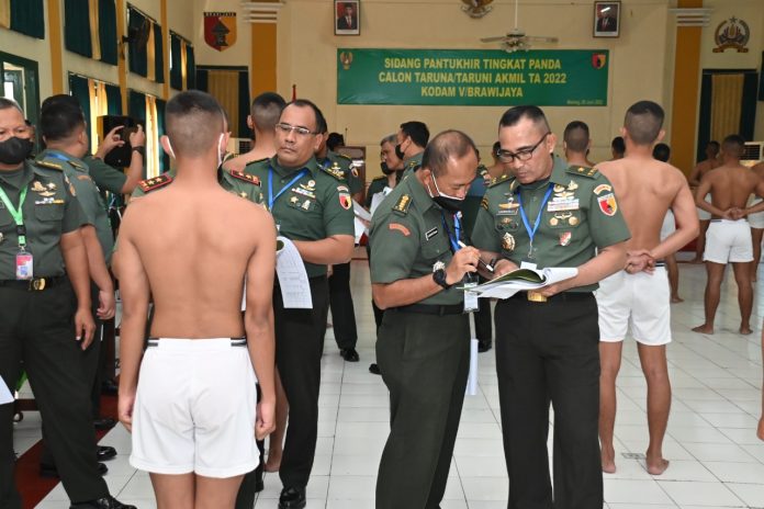 Dalam kegiatan tersebut, Pangdam V/Brawijaya selaku Pimpinan Sidang melakukan pemeriksaan dan penelitian tahap akhir terhadap 128 Calon Taruna/Taruni Akmil TA. 2022, setelah melalui serangkaian tahapan seleksi.
