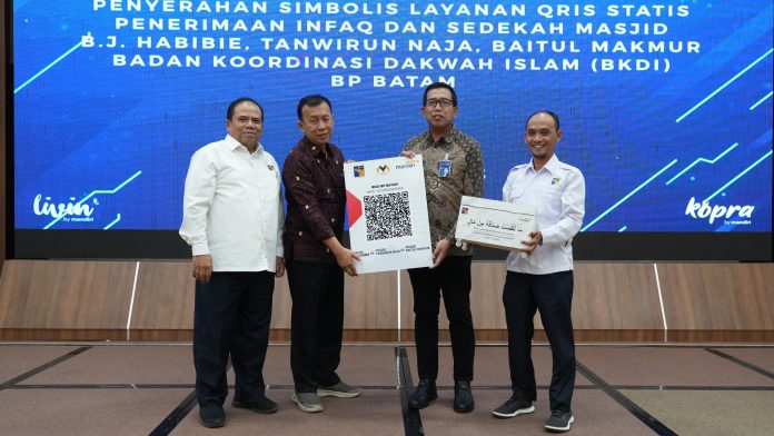 Setelah penandatanganan kerja sama, turut dilangsungkan penyerahan simbolis ID Card E-money pegawai BP Batam dan QRIS statis penerimaan infaq sedekah Masjid di bawah pengelolaan Badan Koordinasi Dakwah Islam (BKDI) BP Batam.