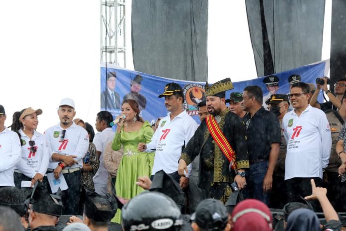 Acara puncak HUT meriahkan Kemerdekaan RI ke-77 tingkat Kecamatan Galang tersebut juga dimeriahkan oleh artis Ibu Kota, Maya KDI.