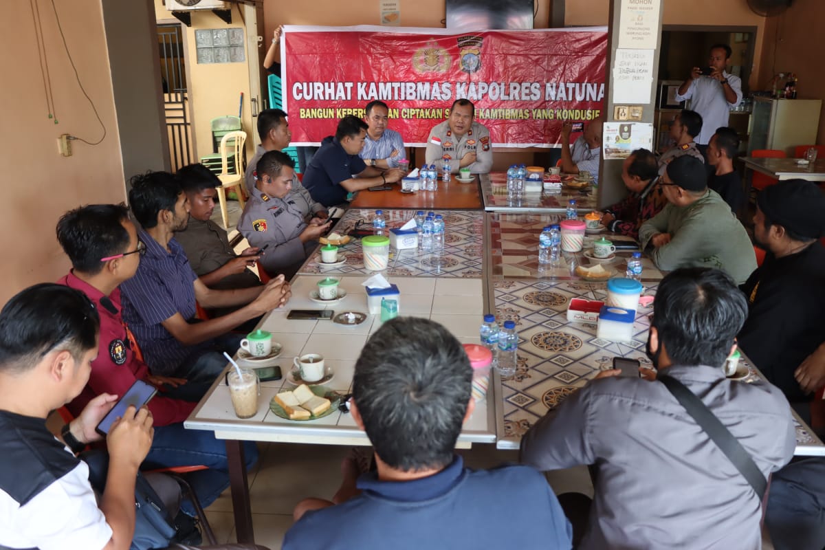 Wakapolres Natuna Kompol Feri Afrizon, SE di dampingi PJU Polres Natuna duduk bersama ngopi santai berbincang situasi Keamanan dan ketertiban masyarakat (Kamtibmas) di wilayah Kabupaten Natuna, Jumat (13/01/2023).